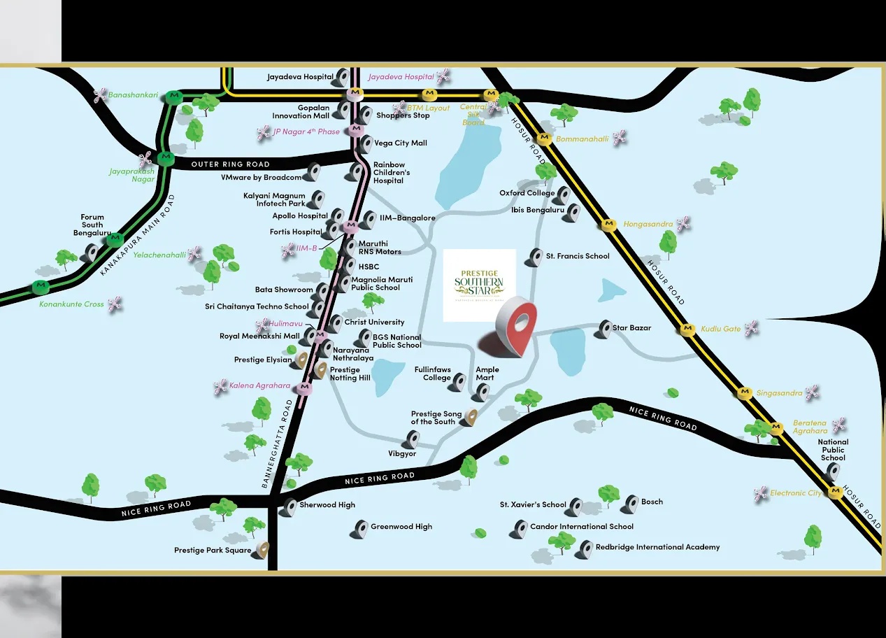 Prestige Southern Star offers luxurious 3 & 4 BHK apartments near Prestige Begur Road and Bannerghatta Road. This premium residential launch by Prestige Group, known as Southern Star Prestige, blends comfort, elegance, and nature. As part of the much-awaited Prestige New Launch Bannerghatta, it’s set to be a landmark for upscale living in Bangalore. With world-class amenities and a prime location, Prestige Southern Star redefines modern lifestyle.